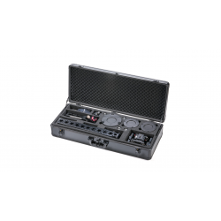 Le système complet se compose de quatre plaques de montage en queue d'aronde, d'une plaque de connexion en queue d'aronde, de deux petites ventouses, d'une grande ventouse, d'un bras d'absorption des chocs avec pôle d'amortissement, d'une tête d'absorption des chocs, d'une plaque de base d'alimentation pour le DJI RS 2, d'une plaque de batterie à double montage en V avec support, d'un jeu de huit contrepoids de 221 grammes, de dix serre-câbles à ventouse, d'une ceinture de sécurité, d'un kit d'outils et d'une mallette étanche à coque dure pour ranger et transporter le tout.