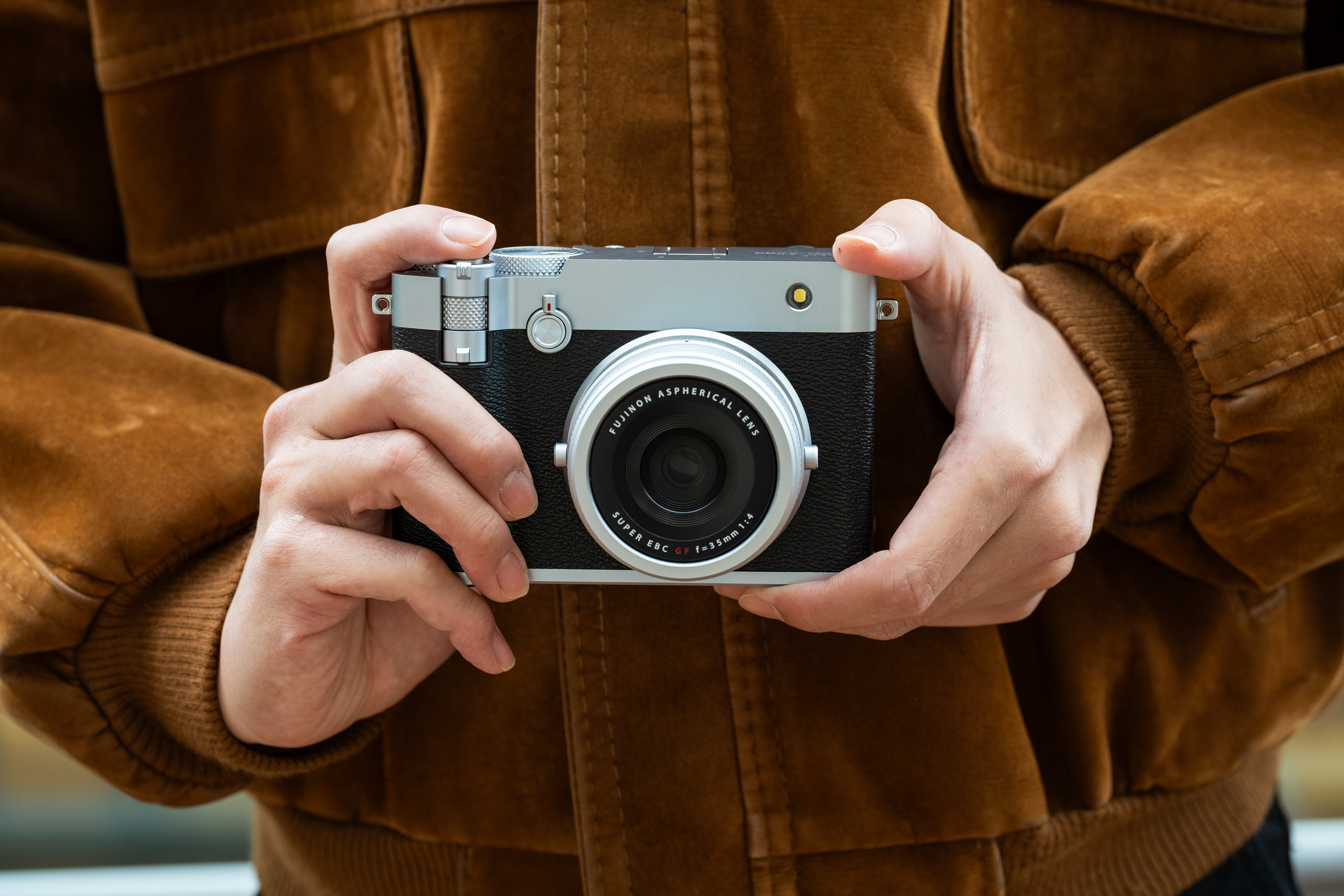 Avec 760 g seulement, le GFX100RF est le moyen format le plus compact de Fujifilm. Sa prise en main ergonomique et son design inspiré des X100 en font un appareil facile à transporter et discret.