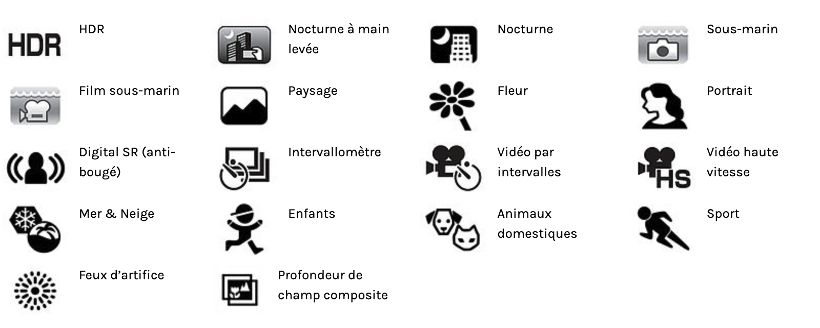 Choix de 18 modes scènes.