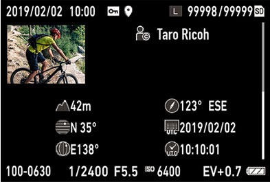 Il intègre également des fonctions pratiques pour la prise de vue en extérieur, comme un module GPS capable d’enregistrer les données géographiques et un historique des positions sur les images capturées, ou encore une boussole électronique pour simplifier l’utilisation sur le terrain.