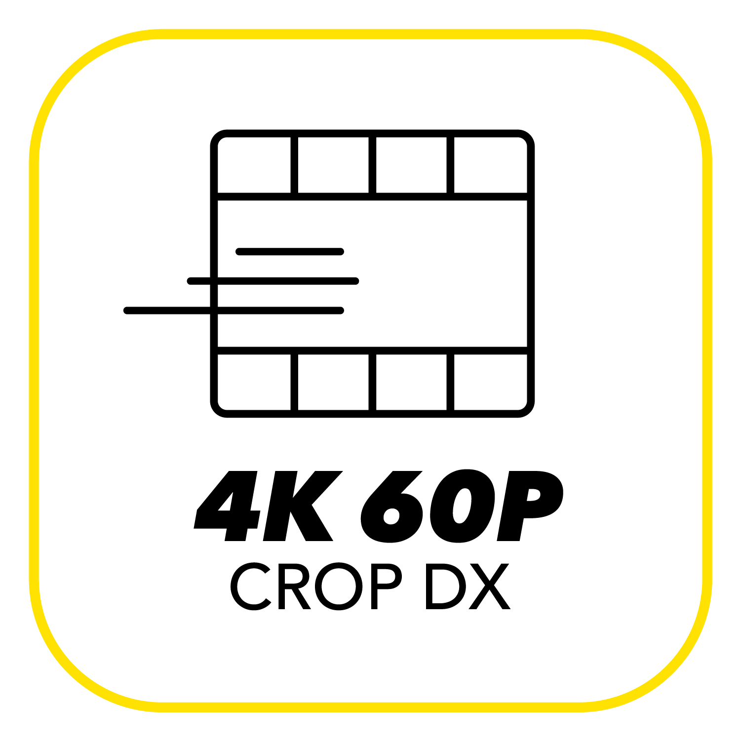 - 3840 x 2160 jusqu'à 60 images par seconde (4K) avec Crop DX et 30 images par seconde sans Crop