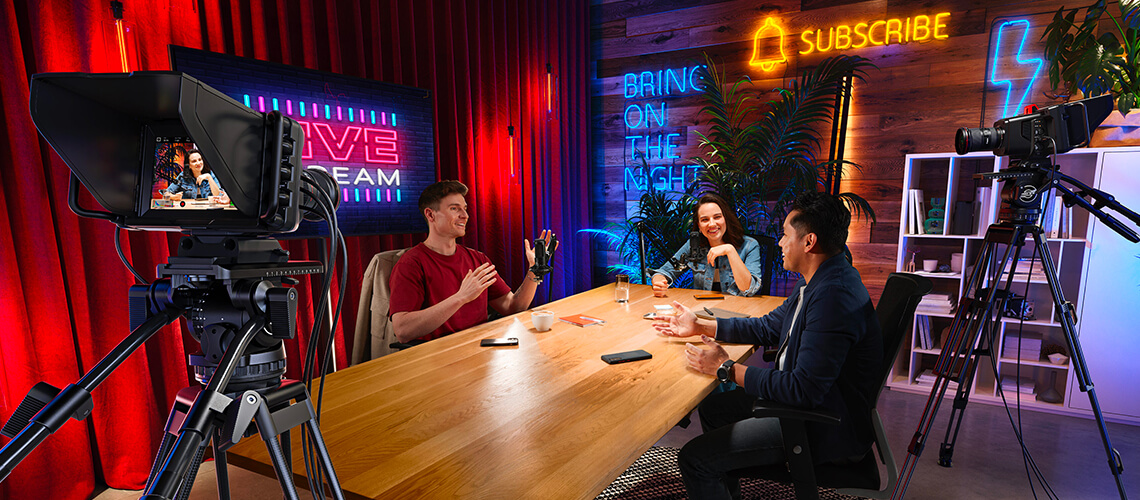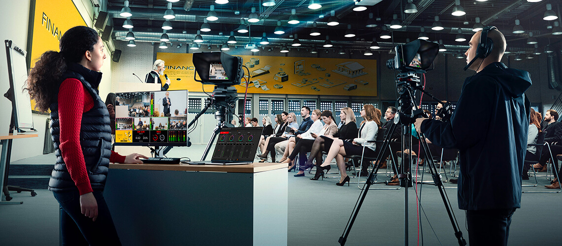 La Blackmagic Studio Camera est faite pour la production en direct, mais comme elle enregistre en Blackmagic RAW sur des disques USB, vous n’êtes pas tenu de vous en servir avec un mélangeur en direct. Elle peut être utilisée avec un trépied, par exemple. Le grand viseur de 7" en fait l’outil idéal pour les débats, la production télévisée, les informations, les programmes sportifs et éducatifs, les présentations, et même les mariages !