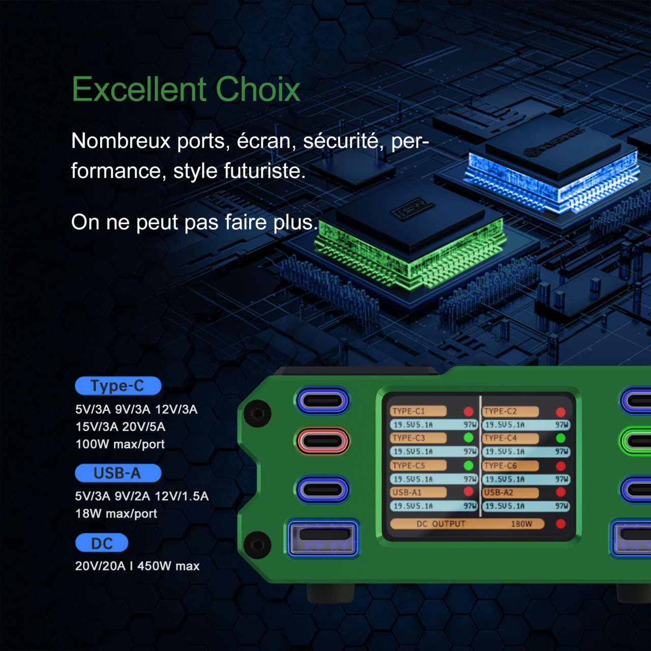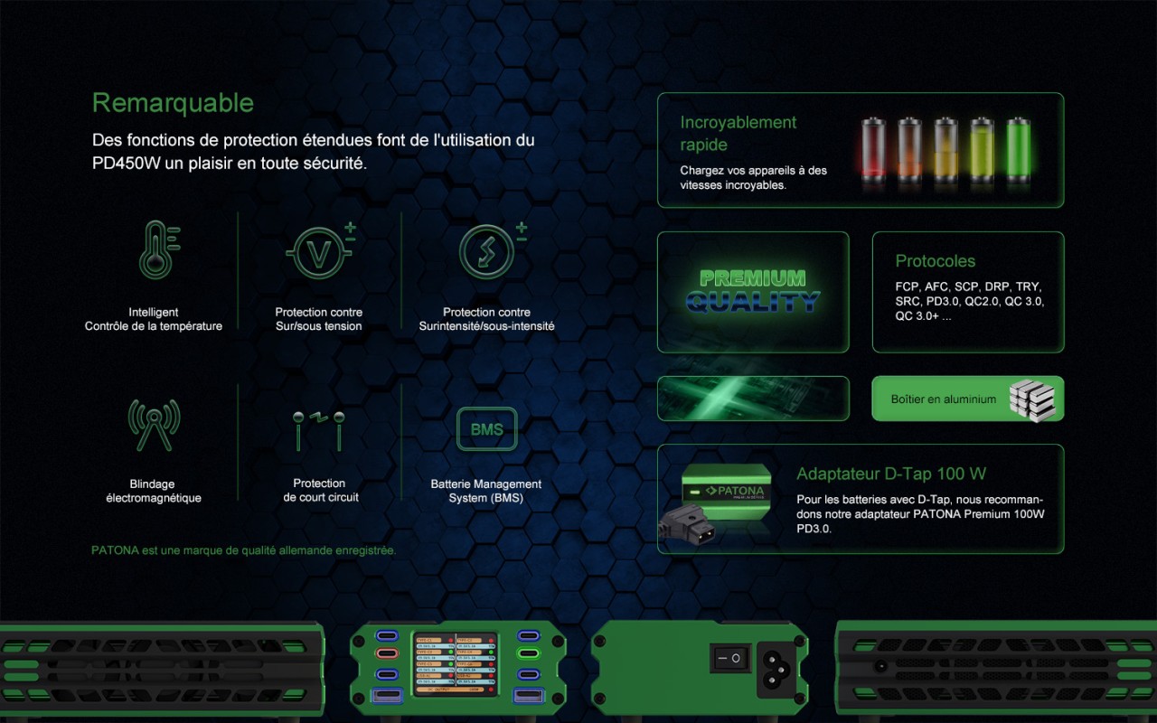 PATONA CHARGEUR MULTIPORT PREMIUM PD450W (6x USB-C /2x USB-A/1x DC)