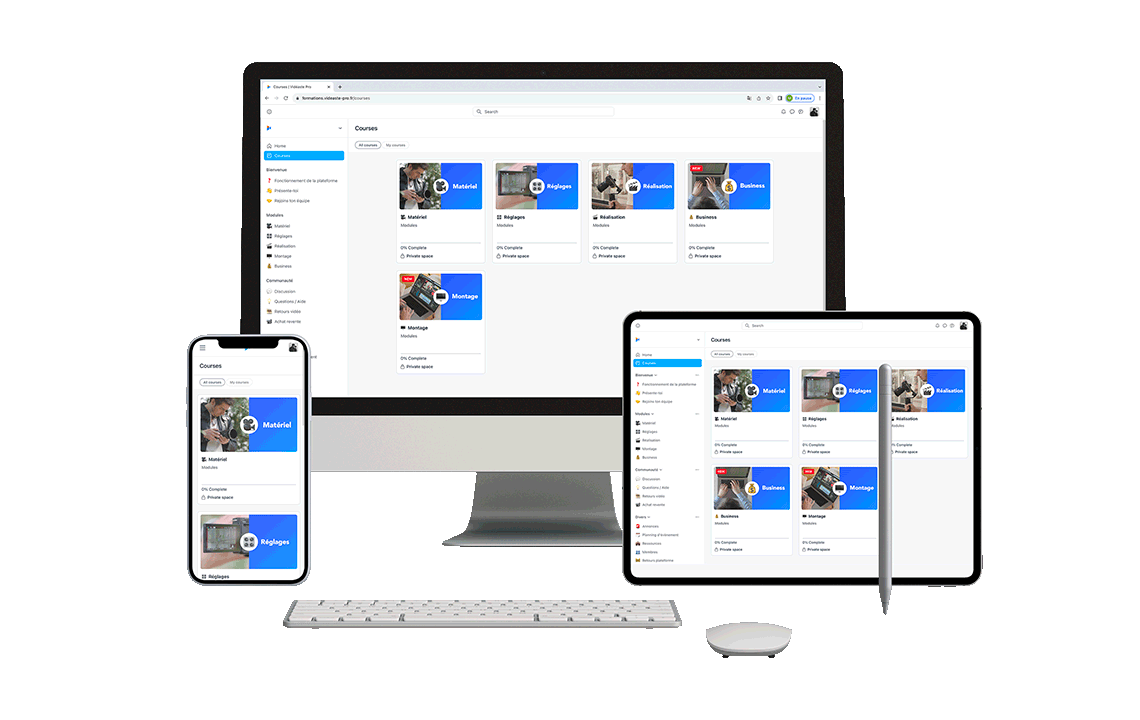 Bref, le but de cette plateforme c'est de ne plus être tout seul chez soi à travailler mais de réellement construire une communauté de vidéaste qui s'entraide. La plateforme est même disponible sur toutes les plateformes afin de suivre des modules que ce soit dans le bus sur ton téléphone ou à ton bureau.