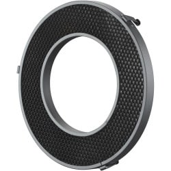 Fabriquée en aluminium, la grille en nid d'abeille pour le corps de la tête de flash annulaire R200 de Godox réduit le large faisceau de la tête, élimine la lumière parasite et fournit le contrôle directionnel nécessaire pour un éclairage sélectif.