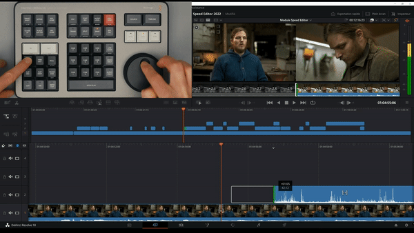 Le clavier speededitor est filmé en permanence pendant la leçon pour que vous puissiez comprendre et apprendre en direct les actions qui s'effectuent grâce au clavier dans ma timeline.