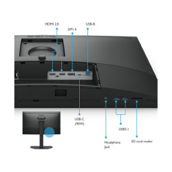 La connectivité étendue, incluant HDMI, DisplayPort et USB-C, permet une intégration fluide avec divers dispositifs et supports. Les ports USB facilitent la connexion de périphériques externes, tandis que la charge USB-C jusqu'à 90W soutient un espace de travail épuré et fonctionnel. Avec leur design ergonomique, ces moniteurs s'adaptent facilement à votre espace de travail, offrant des options de pivotement, d'inclinaison et de réglage en hauteur pour un confort visuel optimal.