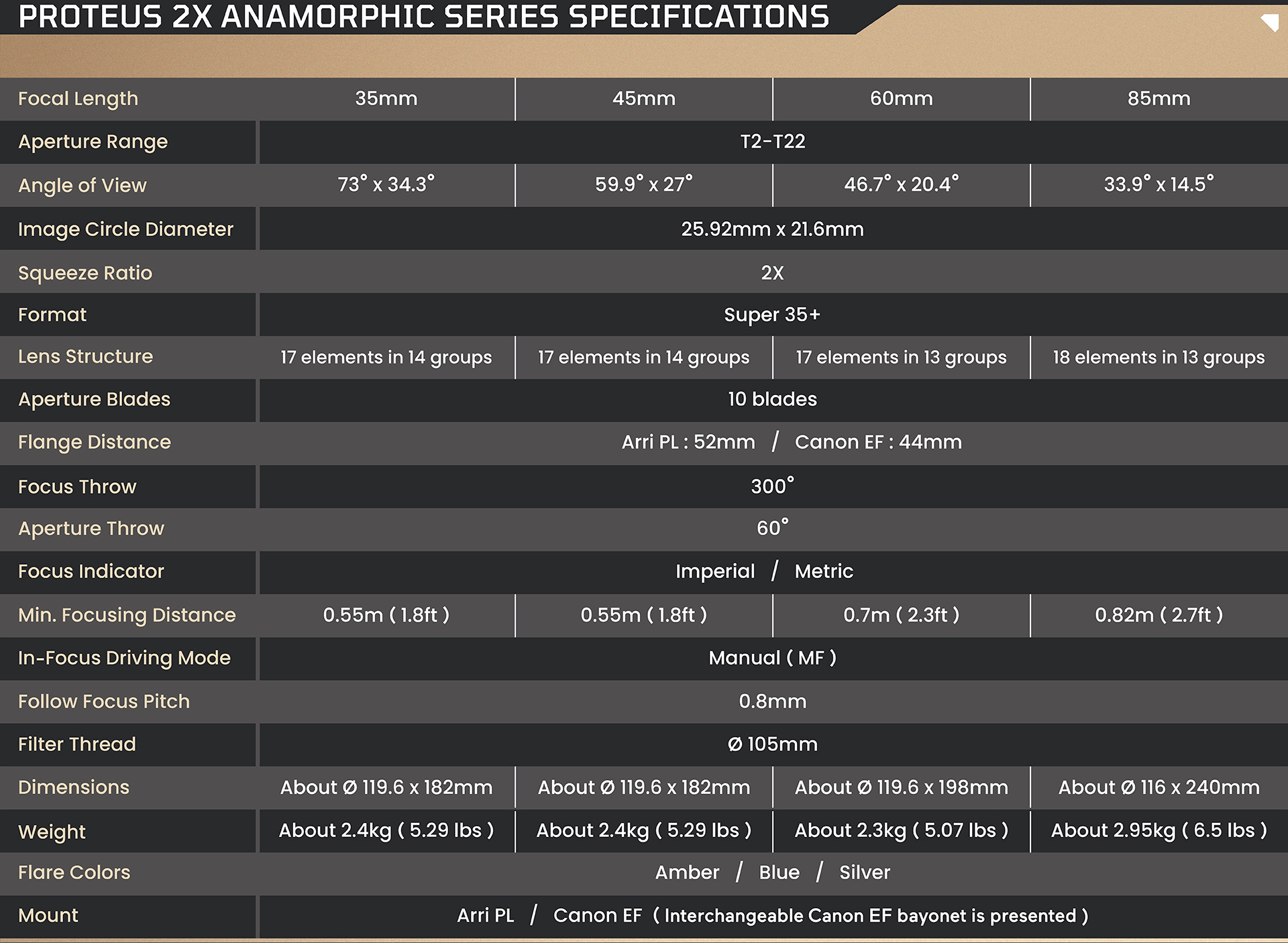 Une nouvelle gamme d'optiques qui bénéficie de performances optimisées pour les productions anamorphiques professionnelles. La gamme Proteus est une pièce moderne qui vous donne la possibilité d'obtenir un look anamorphique vintage, un bokeh particulièrement doux, un focus breathing réduit ainsi que des flares particuliers.