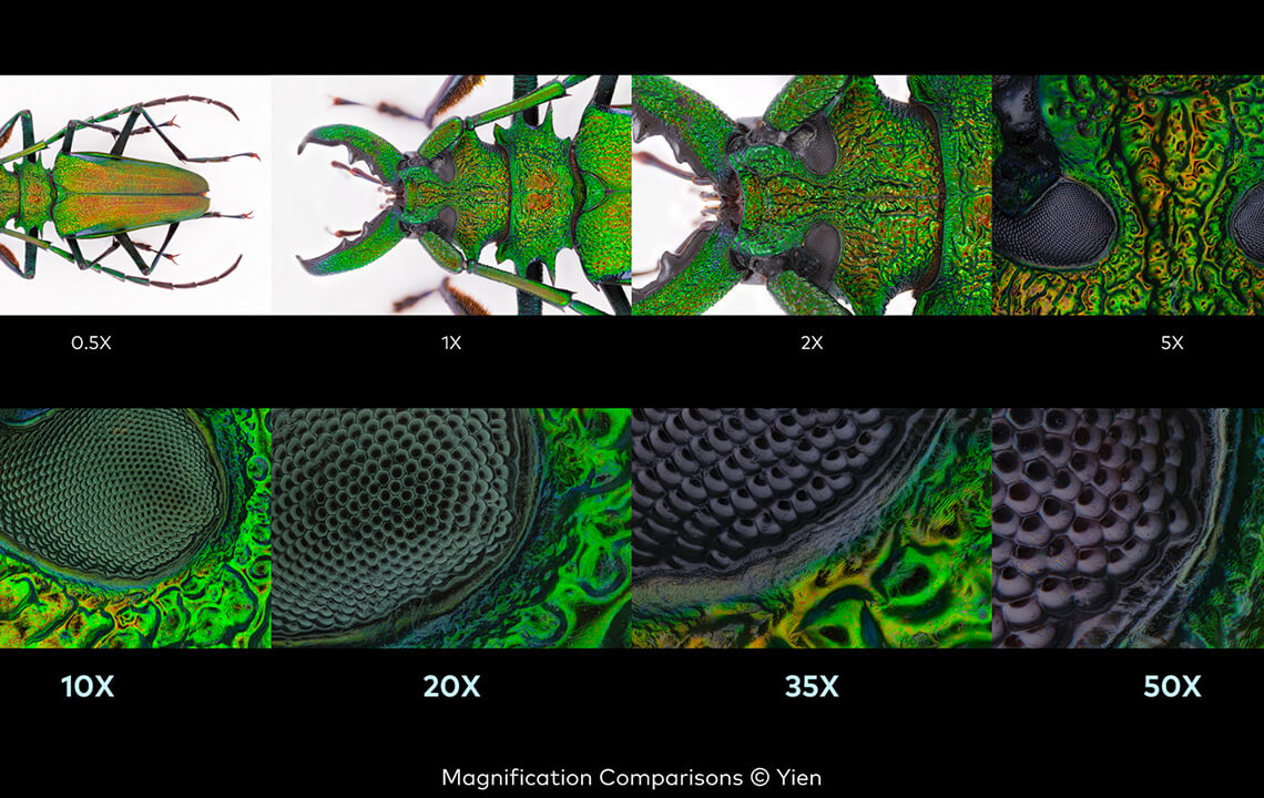 Il est le premier objectif prêt à l'emploi pour un grossissement aussi élevé, l'Aurogon raccourcit la courbe d'apprentissage et supprime la barrière du coût pour les professionnels et les amateurs. Cet ensemble d'objectifs APO est conçu selon un concept unique qui offre des performances optiques élevées avec une longue distance de travail fixe de 20 mm pour tous les rapports de grossissement. Les photographes peuvent simplement remplacer les différents objectifs à tube pour obtenir un grossissement de 10X, 20X, 35X ou 50X sans modifier la distance de travail et les autres réglages. Un NA réglable de 0,5 à 0,15 offre une luminosité exceptionnelle pendant la mise au point et peut être ajusté pour minimiser la diffraction lorsqu'il est associé à différents appareils photo et configurations d'éclairage. Avec un prix abordable pour l'ensemble complet, c'est le compagnon idéal pour plonger dans le monde microscopique.