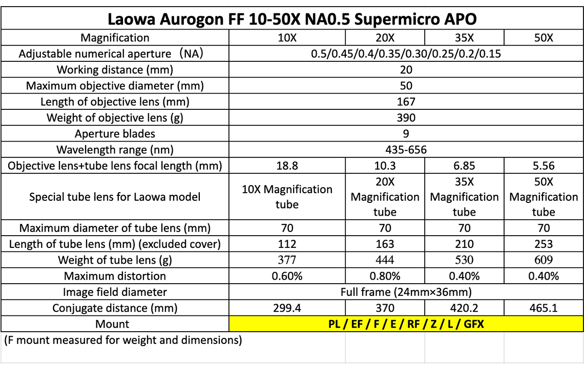 LAOWA AUROGON FF 10-50X NA0.5 SUPERMICRO