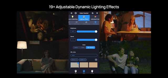 19 effets d'éclairage avec paramètres réglables