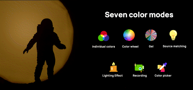 L'utilisateur peut rapidement choisir n'importe quelle température de couleur, de 2000K à 20 000K, ou parmi des centaines de couleurs prédéfinies pour les filtres Lee ou Rosco.