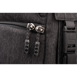 Le compartiment principal spacieux est accessible à 180° grâce à un panneau zippé orienté vers l'arrière qui révèle également une pochette pour ordinateur portable de 13" ou 15". Les sept séparateurs amovibles permettent de ranger et d'organiser le matériel photo et électronique de manière efficace. Des poches de rangement zippées en filet sont également présentes pour les piles, les cartes mémoire ou les petits appareils électroniques. Le sac à dos est également équipé de grandes poches ouvertes pour ranger une bouteille d'eau de 1 L.