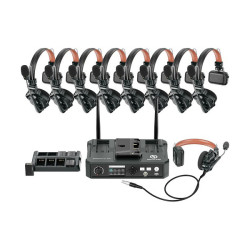 Il bénéficie d'une portée de transmission sans fil jusqu'à 350 mètres et utilise la technologie DECT 6.0 pour une connexion fiable et sécurisée. Les casques sont conçus pour une durabilité et un confort exceptionnels, avec une autonomie de batterie prolongée permettant une utilisation continue jusqu'à 10 heures. Les commandes intuitives incluent des boutons de volume, de mute, et de groupe, facilitant une utilisation simplifiée même dans les conditions les plus exigeantes.