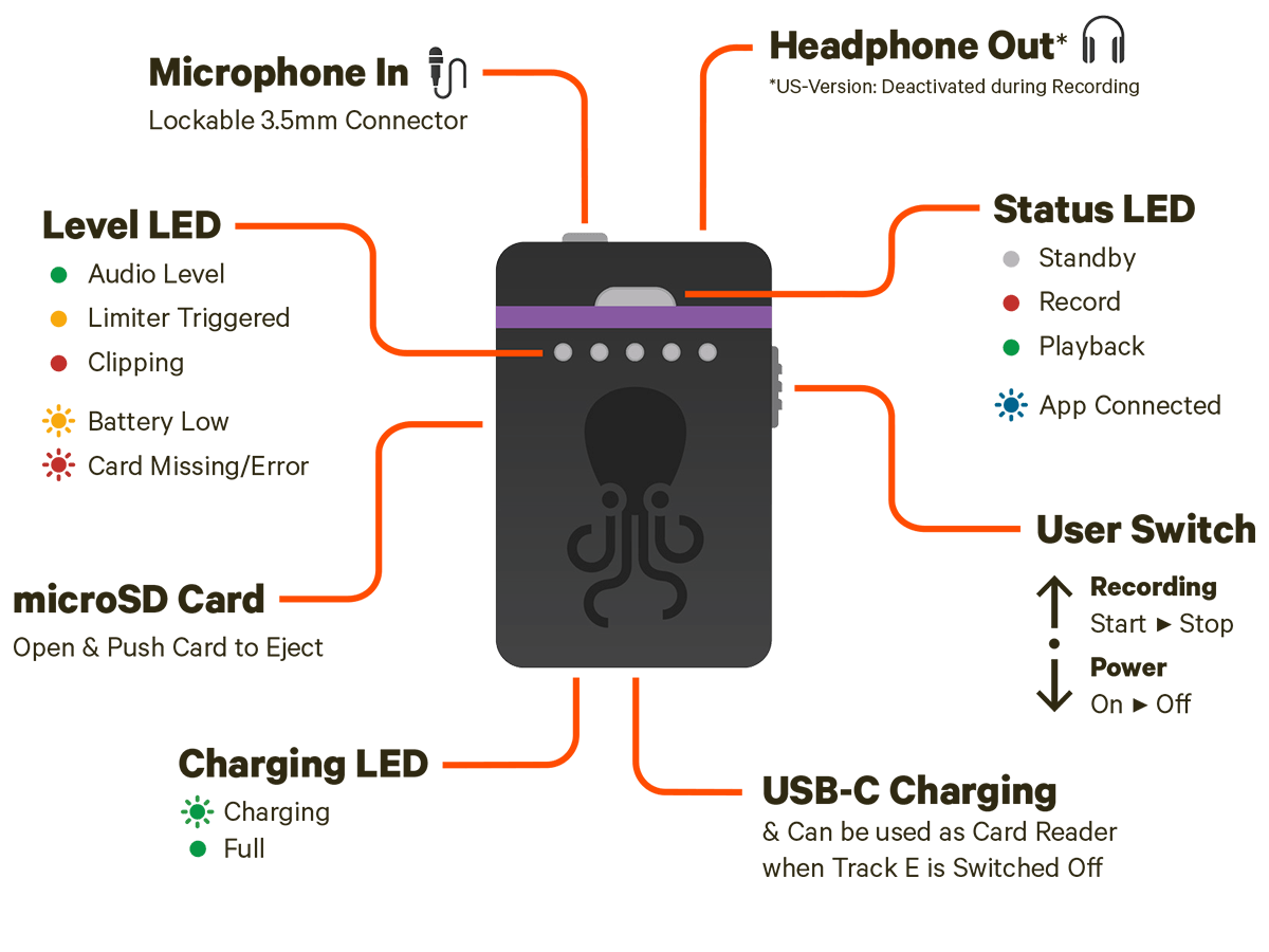 TENTACLE ENREGISTREUR AUDIO DE POCHE TRACK E